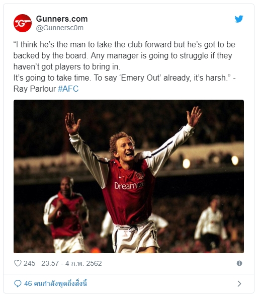เรย์ พาร์เลอร์ ตำนานนักเตะ อาร์เซนอล หวังให้ อูไน เอเมอรีย์ พาทีมขึ้นทาบชั้นกับ